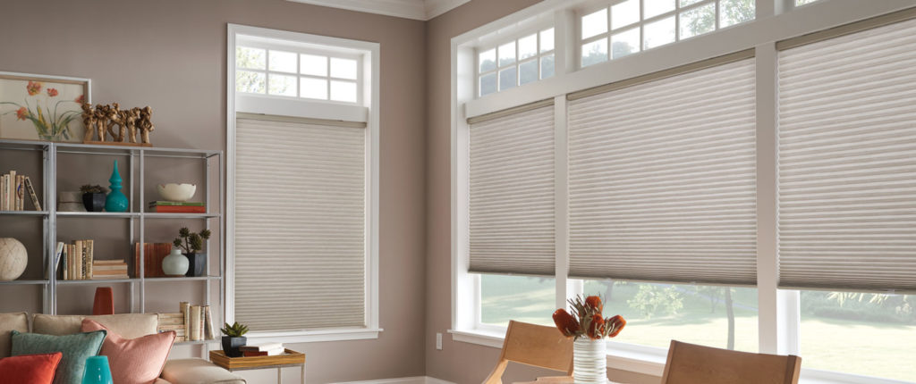 Cellular shades work in casual or professional settings. With cellular shades, you can choose the percentage of light you would like to allow through to best fit the application. For commercial applications, we recommend Levolor. RollEase, or Graber cellular shades.